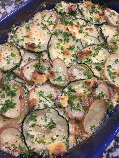 What You Will Need: Zucchini, potatoes, half & half, unsalted butter, salt, pepper & 1 or 2 cheeses of your choice. I have sliced provolone & a garlic herb cheese called Boursin.
